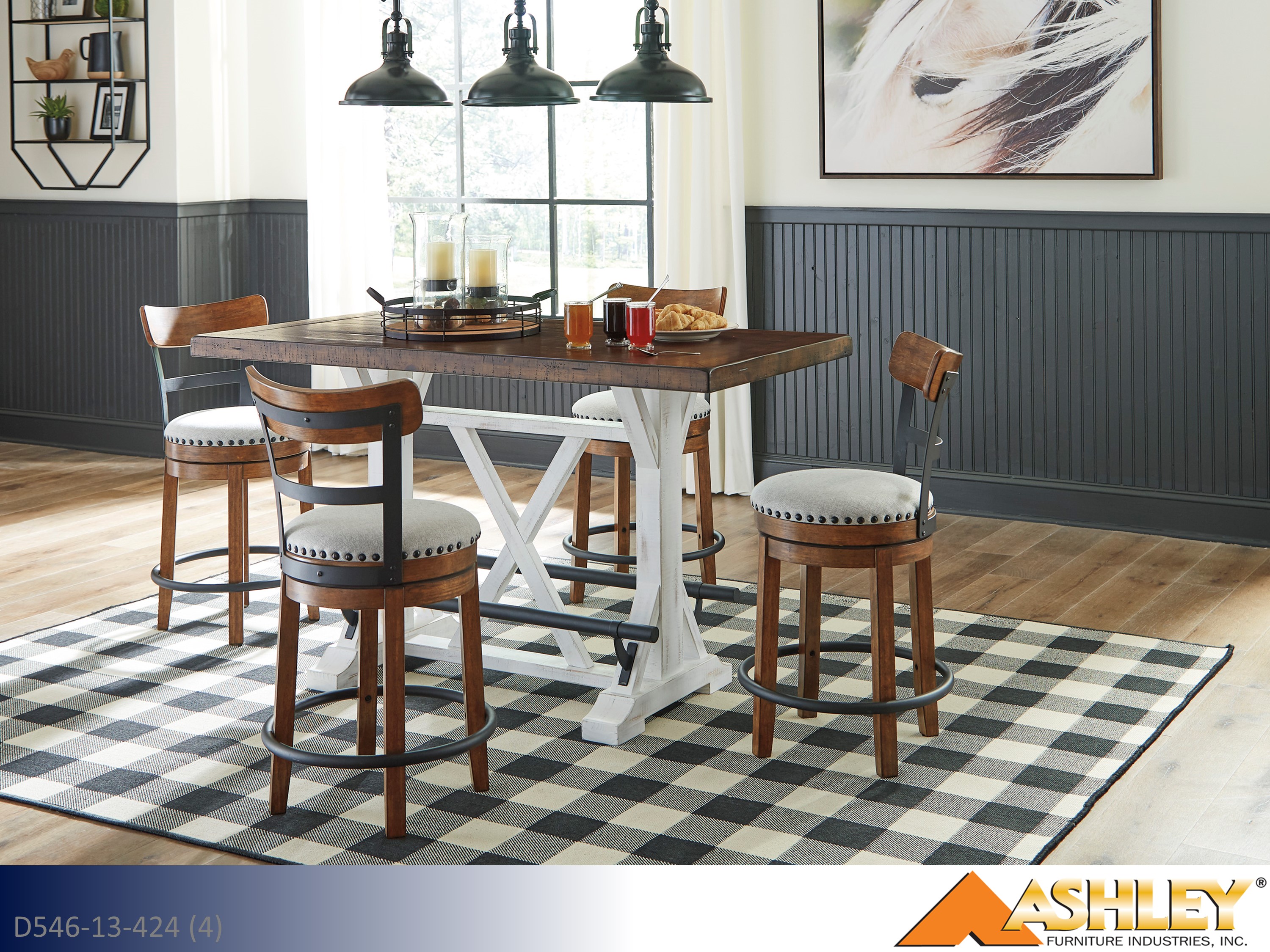 Bring the Ashley Valebeck Brown 0 into your life, your style, and your home! The Ashley Valebeck Pub Set in Brown offers a rustic and stylish addition to your dining space. This set includes a pub-height table and four matching stools, all finished in a rich brown color. The table features a sturdy design with a rustic charm, while the stools provide comfortable seating. This set is perfect for creating a cozy and inviting atmosphere in your dining area.