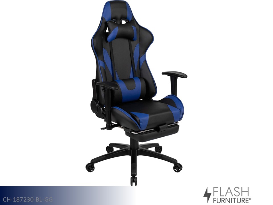 Flash Furniture X30 Gaming Chair - Ergonomic | Reclining Back | Slide-Out Footrest (Blue)